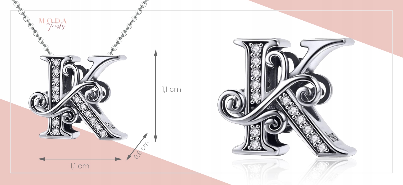 Čudovit obesek, obesek v obliki črke K, ki zaradi dekoracije z belimi kubičnimi cirkoni, Na vsaki roki bo videti čudovito z bleščicami.