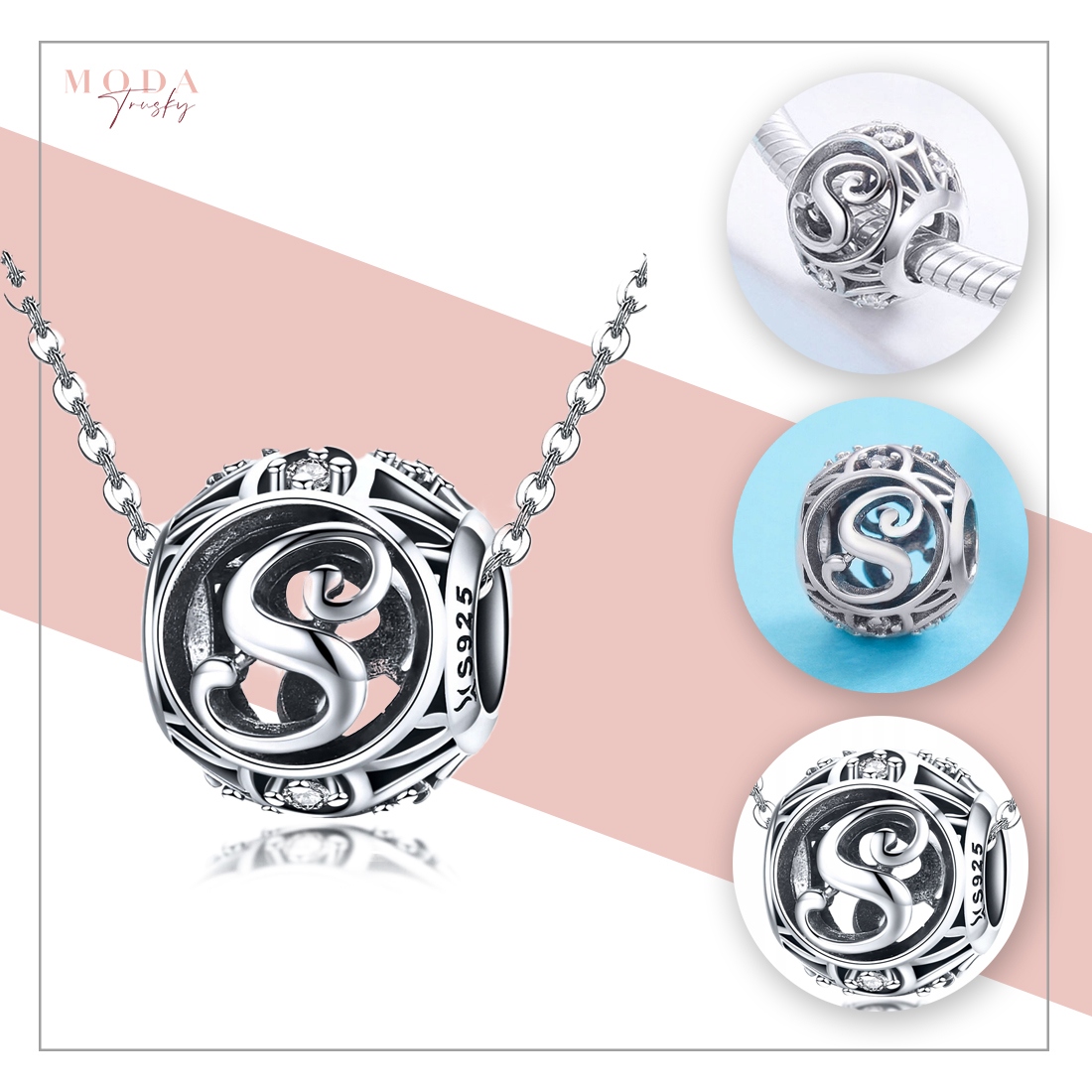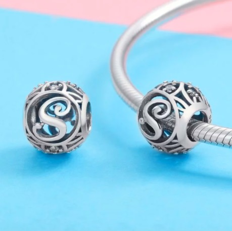 shumee Obeski za Pandora obesek s črko S, srebro 925