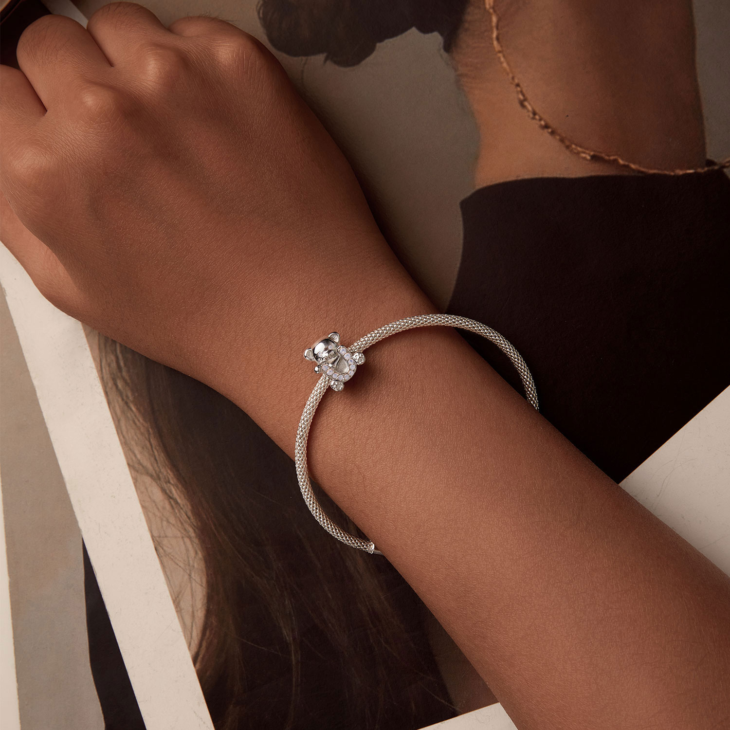 Edinstven obesek, izdelan iz srebra 925. Obesek prikazuje medvedka, ki v tačkah drži črko U, ki simbolizira očarljivo izjavo „Ljubim te“.