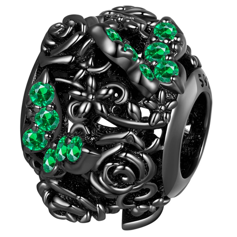 Edinstven obesek z odprtim vzorcem, izdelan iz srebra 925. Srebro 925 z rožami in zelenimi metulji.