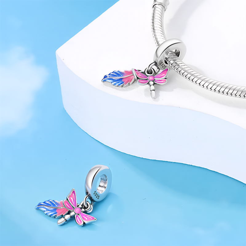 shumee Obeski za Pandora obesek z barvitim perjem in kačjim pastirjem Trusky
