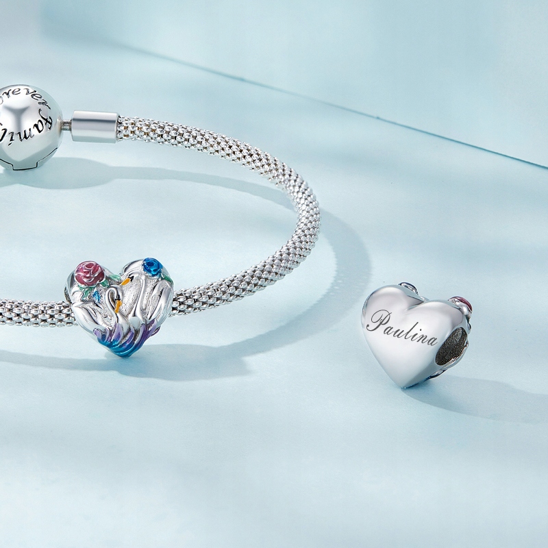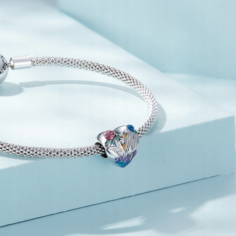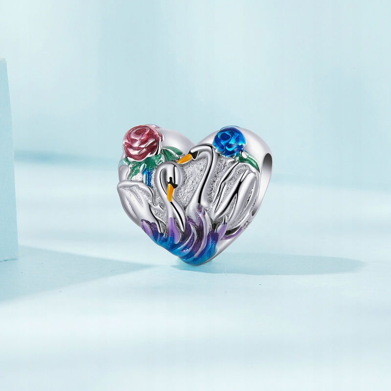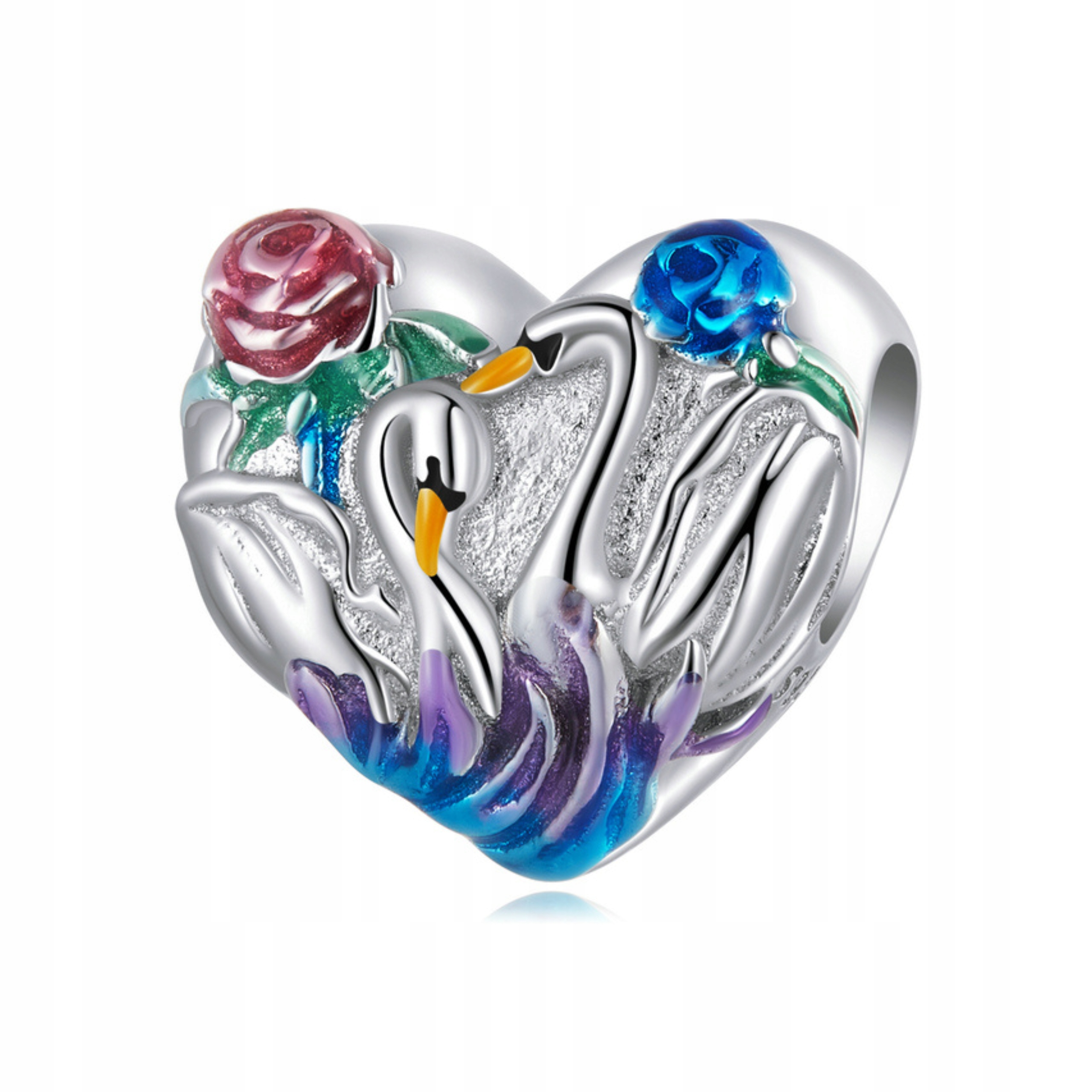 Edinstven obesek iz visokokakovostnega 925 sterling srebra , ki prikazuje zaljubljene labode.
