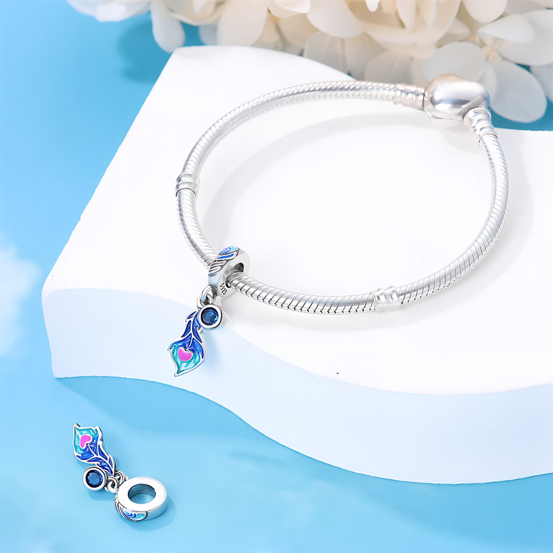 shumee Obeski za Pandora obesek z barvitim pavjim peresom Trusky