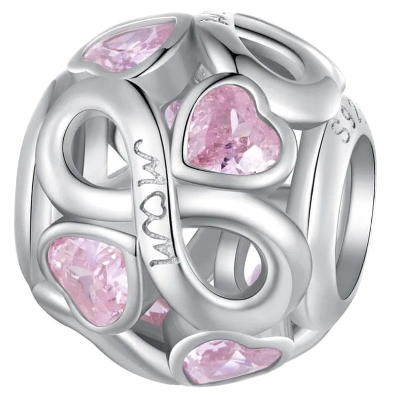 Edinstven obesek, izdelan iz srebra 925. Sterling srebro 925. Ta obesek ima simbol neskončnosti, roza kubična cirkonska srca in napis „Mama“.