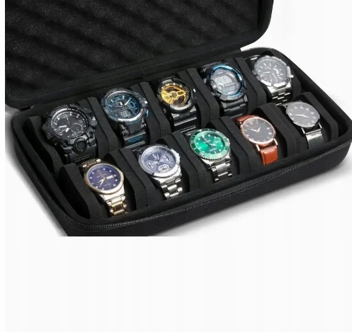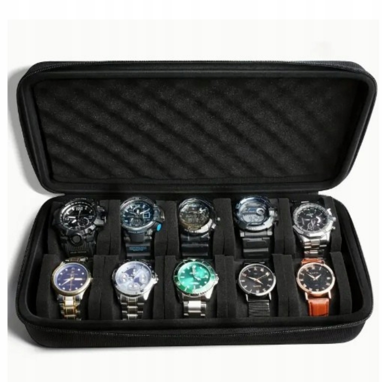 Ta elegantenškatla za shranjevanje urelahko zdrži do10v ločenih, oblazinjenih predelkih. Trda lupinainkovinska zadrgazagotavlja popolno zaščito vaše zbirke pred prahom, praskami in poškodbami. Popoln za shranjevanje doma ali za na pot.SPECIFIKACIJE