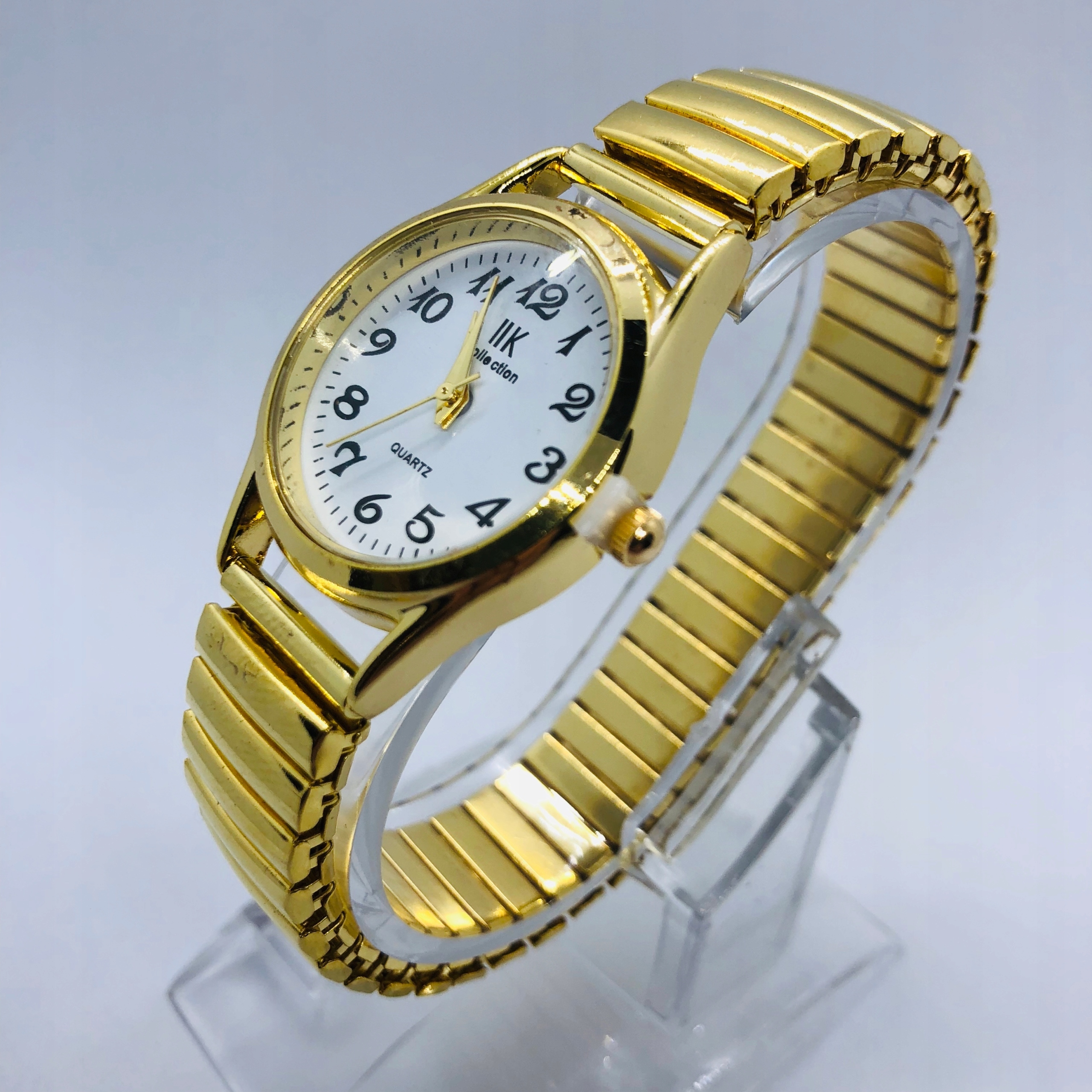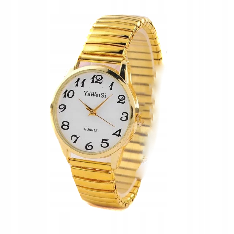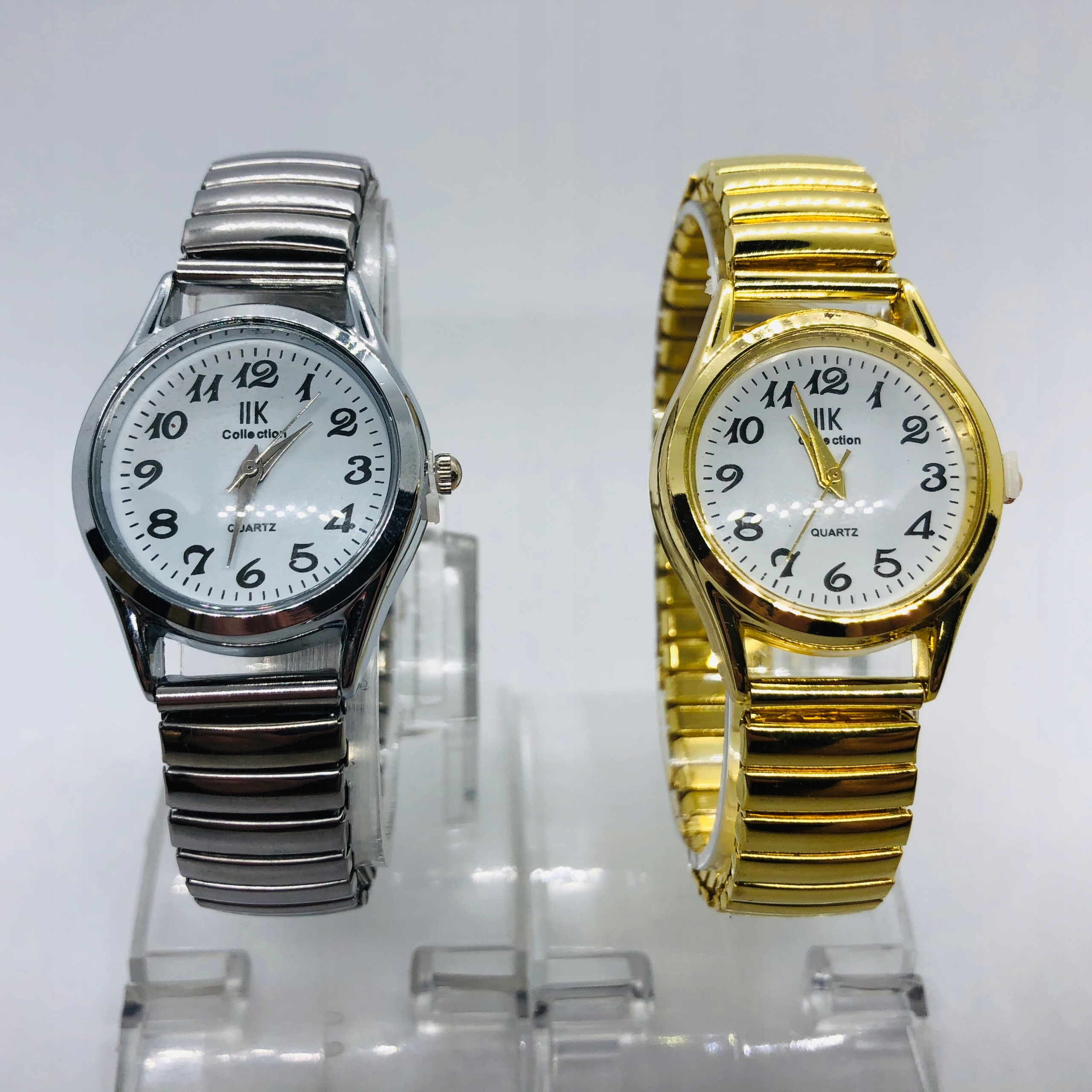 ŽENSKA IN MOŠKA URA UDOBNA, DOLGA, NA ELASTIČNEM PAŠČKU, ZLATA ZAPESTNICA, SENIOR Celoten opis