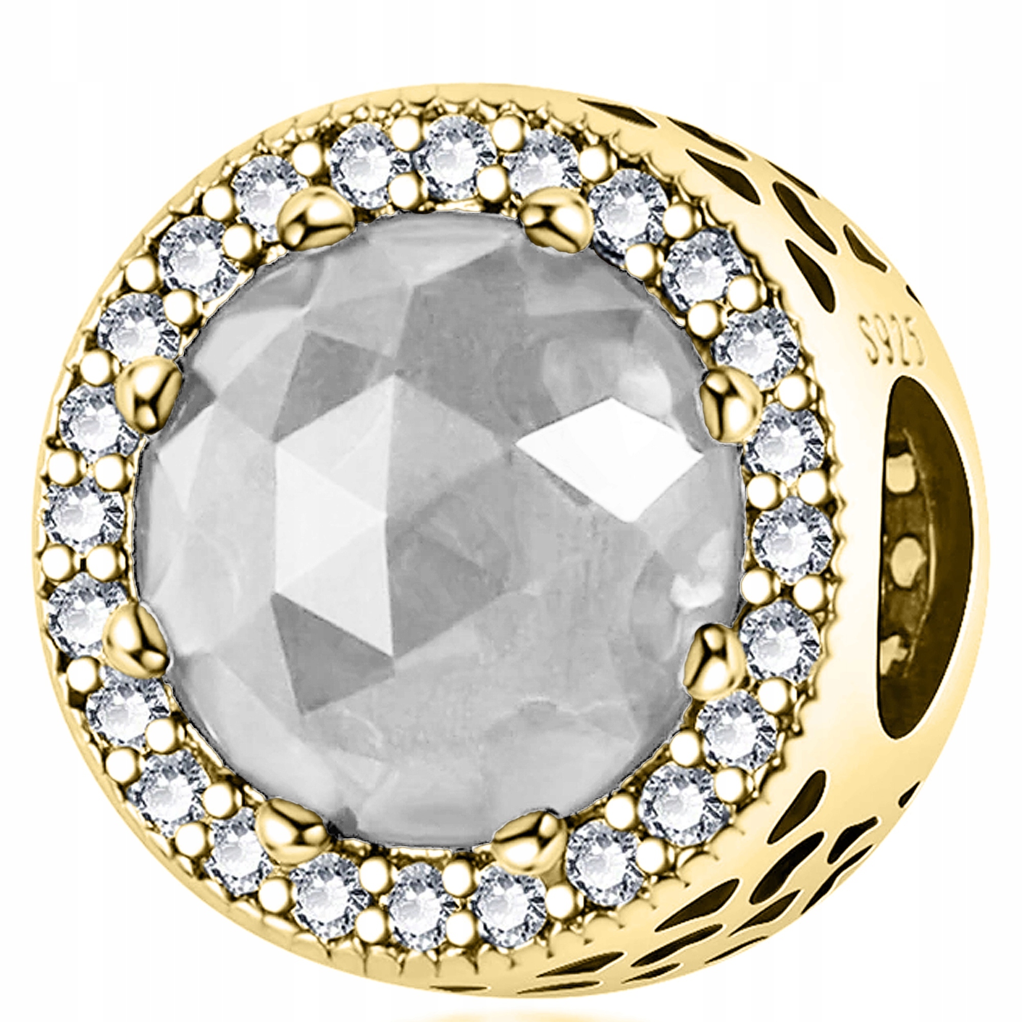 Zlata kroglica iz belega kamna z belim kristalom 925 SREBRNO Celoten opis