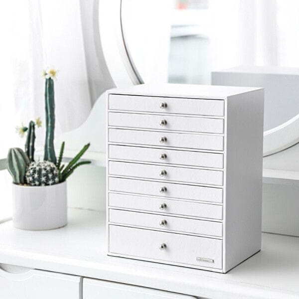 Moderna škatla za nakit z 9 predali. Celoten opis