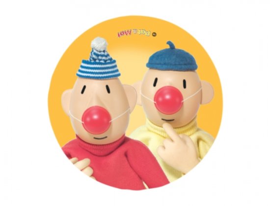 Značka s potiskom priljubljenega dueta Pat in Mat. Značka se lahko pripne na oblačila, nahrbtnik itd. Na sliki sta Pat in Mat s klovnovskim nosom. Velikost: 44 mm.