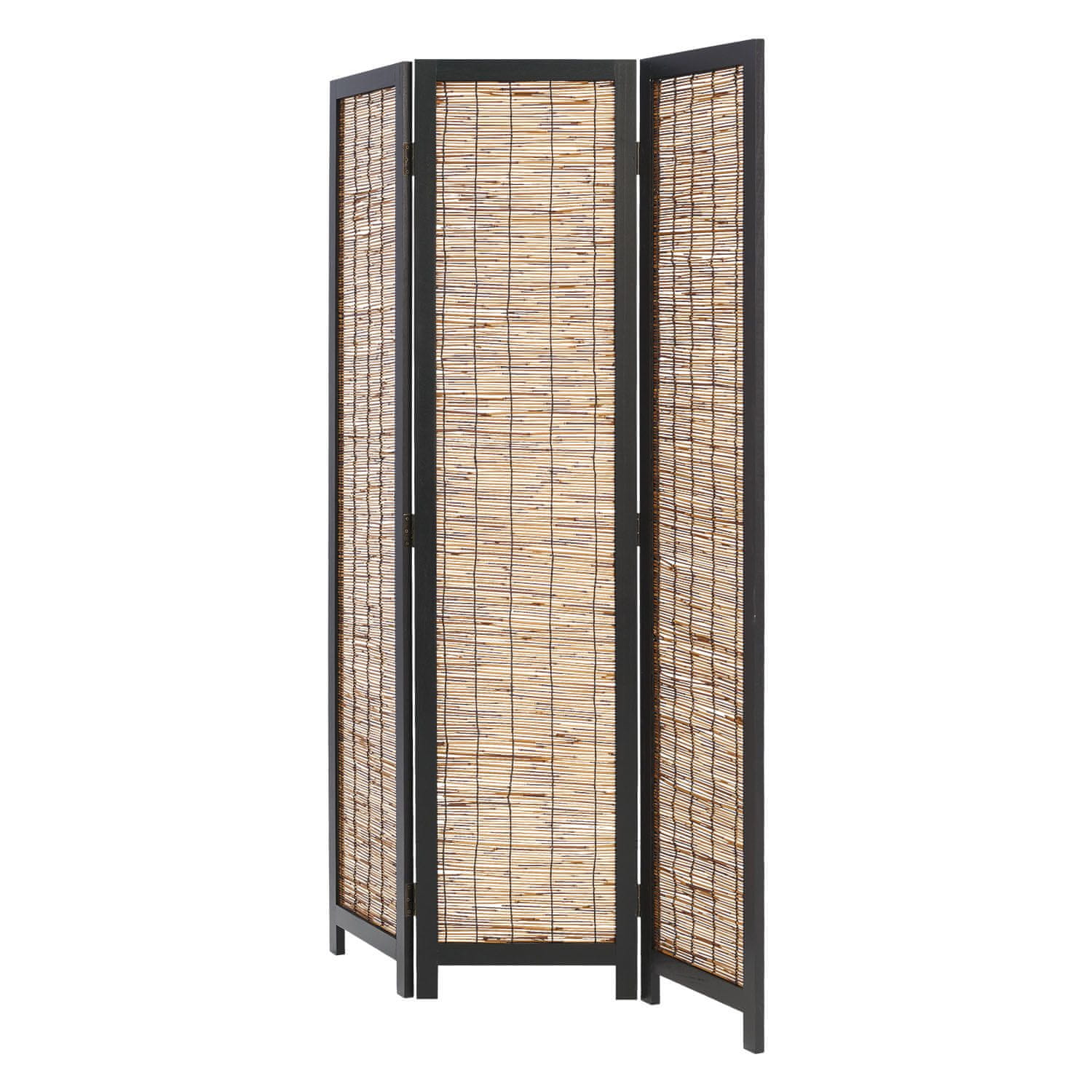 Ta eleganten 3-delni pregradni paravan ponuja stilsko in praktično rešitev za večjo zasebnost ali razdelitev prostora v vašem domu. Izdelan je iz ročno tkanega ratana in okvirjen s črno lakiranim masivnim lesom, kar vsakemu interierju doda pridih naravne očarljivosti in modernega kontrasta. Zložljiva zasnova omogoča prilagodljivo uporabo, zato je idealen kot zaslon za zasebnost, dekorativni element ali funkcionalna pregrada v dnevni sobi, spalnici, domači pisarni ali studiu.