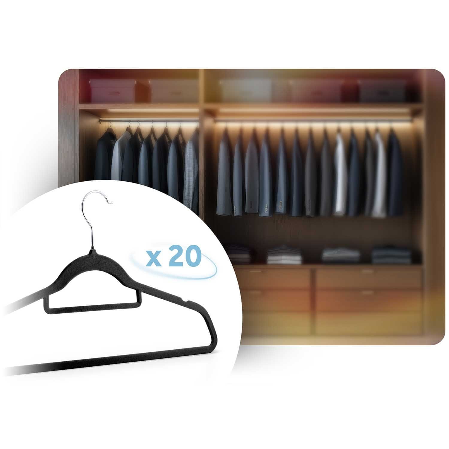 Močni žametni obešalniki za oblačila, 20 kosov Masa: MS-859 Uredite svojo garderobo s stilom s tem kompletom 20 žametnih obešalnikov znamke Massido. ✔ Vzdržljivi in
