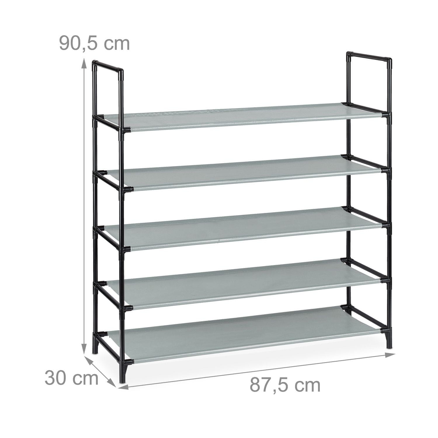 Optimizirajte svoj prostor s to praktično rešitvijo za shranjevanje čevljev s petimi policami, popolnimi za organiziranje do 20 parov čevljev. Idealno za ozke hodnike in kompaktne prostore.