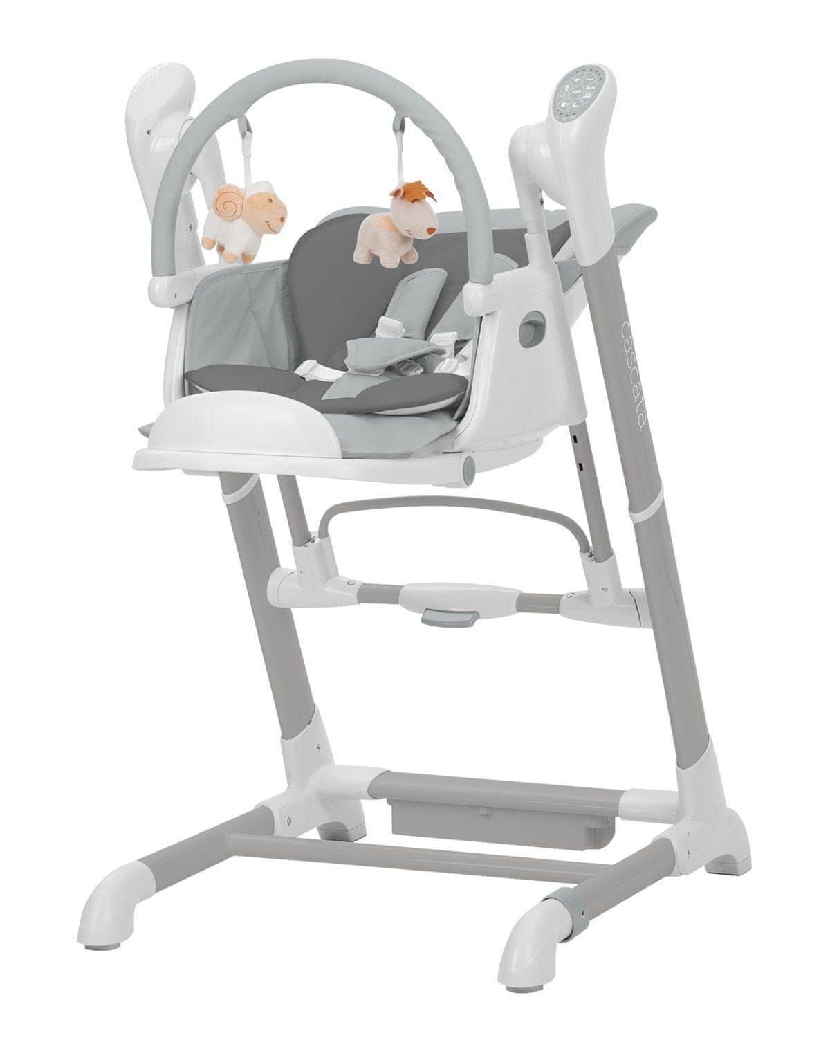 Cascata je večnamenski stol, ki združuje funkcije ležalnika, gugalnice in stolčka za hranjenje.