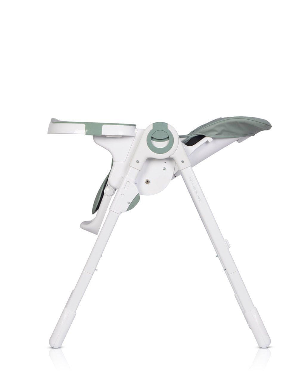 Varno – Za varnost vašega otroka skrbijo 5-točkovni varnostni pasovi in posebna stopnička zaščita, ki preprečuje, da bi otrok zdrsnil s sedeža. Širok razmik med nogami in velika nedrseča gumijasta omejevala zagotavljajo stabilnost stola tudi, ko je otrok nemiren.