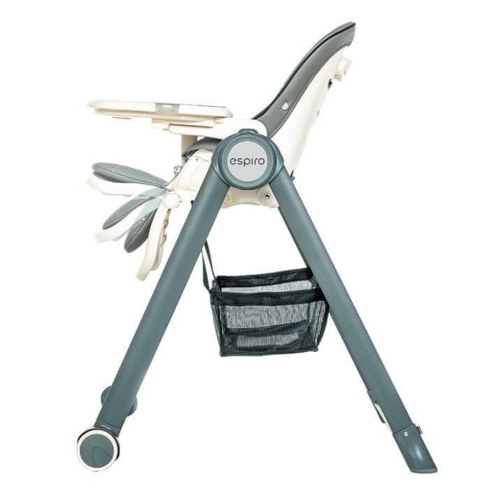 - Naslonjalo stolčka za hranjenje Espiro Penne je mogoče zložiti v ležeči položaj, od zdaj naprej lahko vaš malček sedi, se nasloni ali leže.
