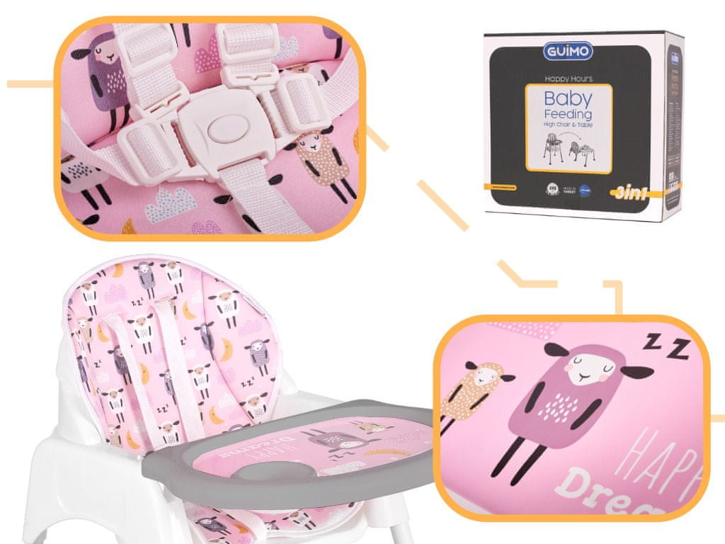 Ikonka Stol za hranjenje stolček stolček stolček 3v1 roza