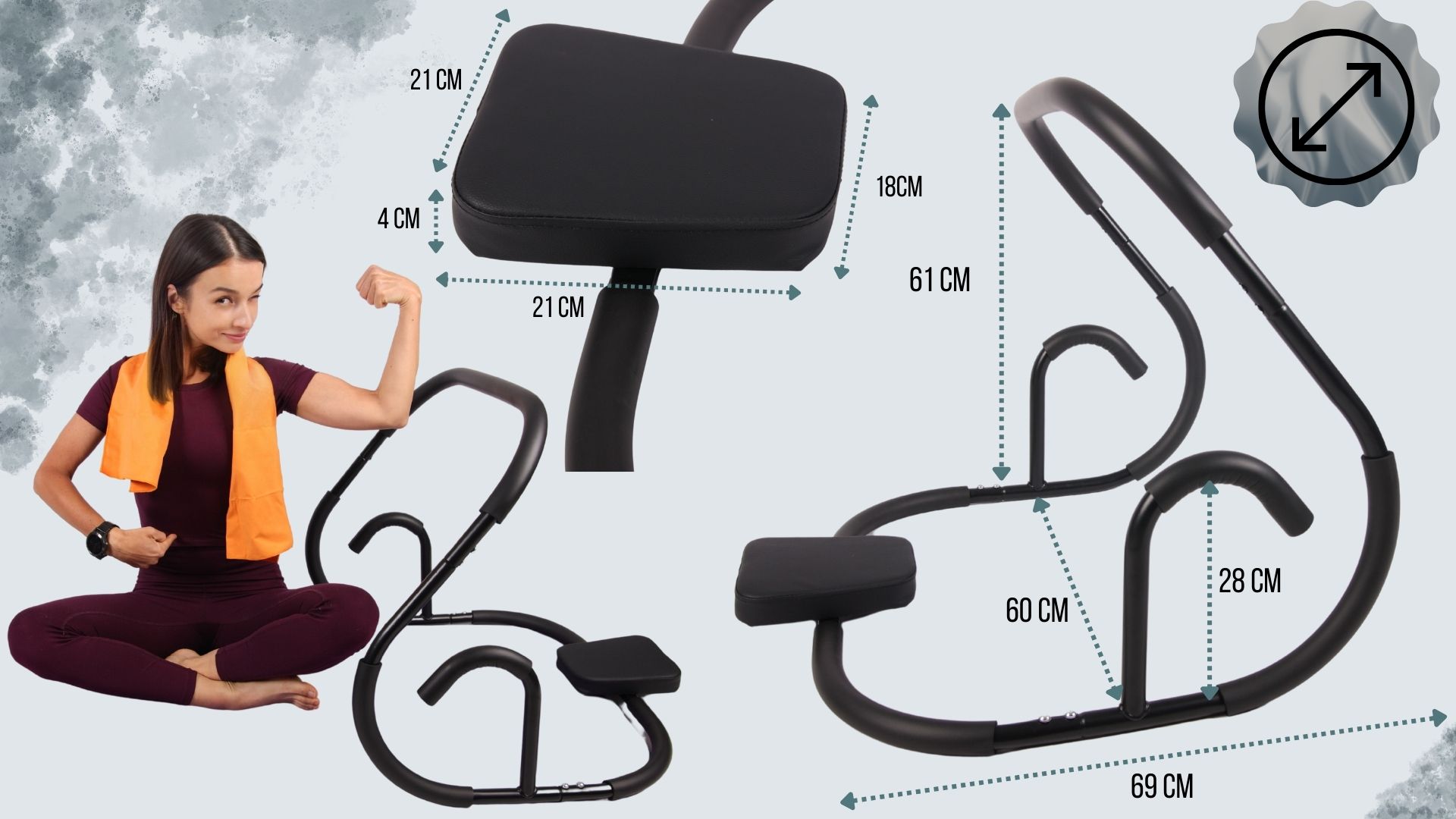 • ✅ udobni stranski ročaji za oporo in stabilizacijo med vadbo