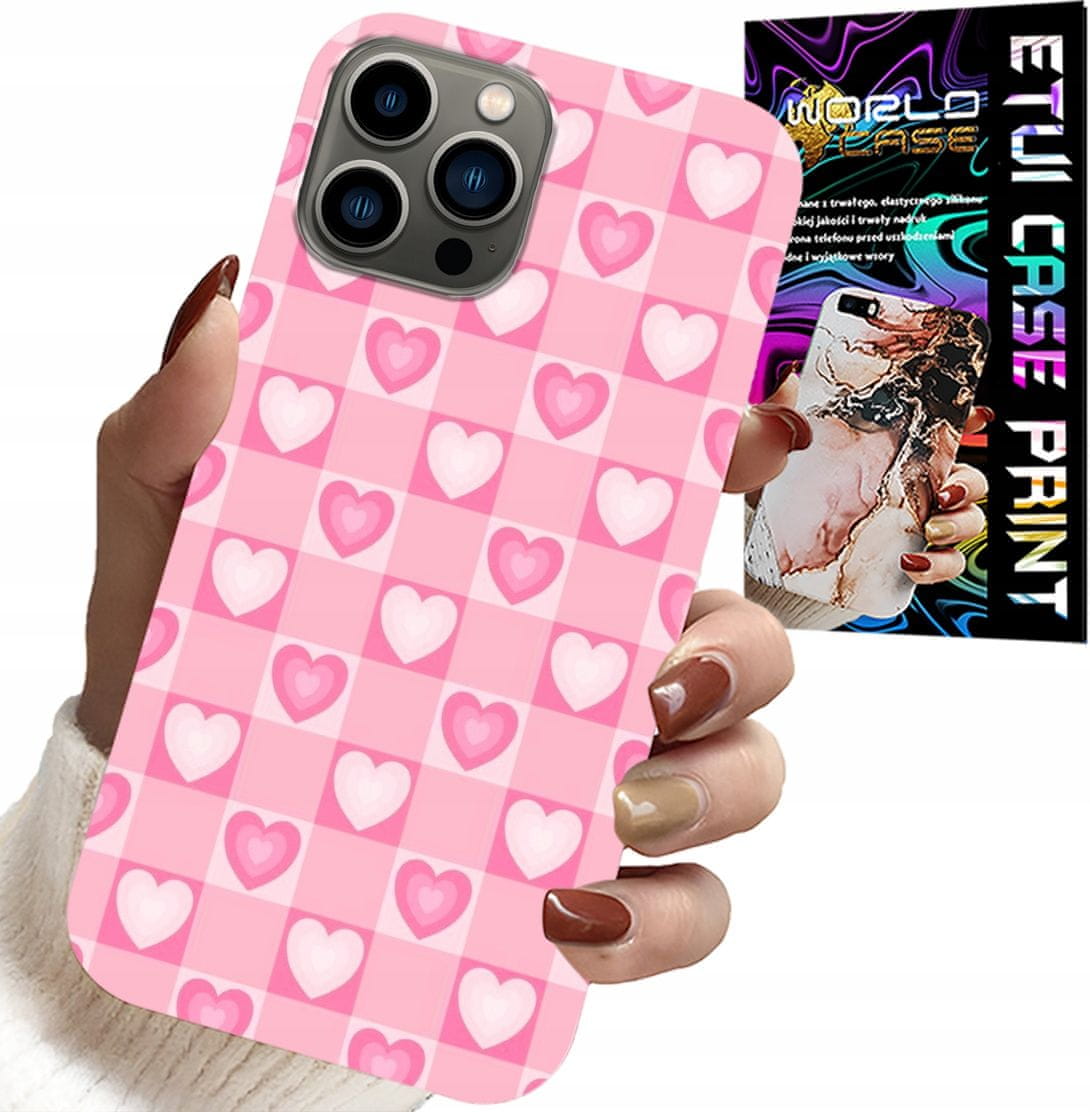 OVITEK ZA IPHONE 11 PRO – ROZA OVITEK S SRČKI IN KARIERJI + STEKLO Celoten opis