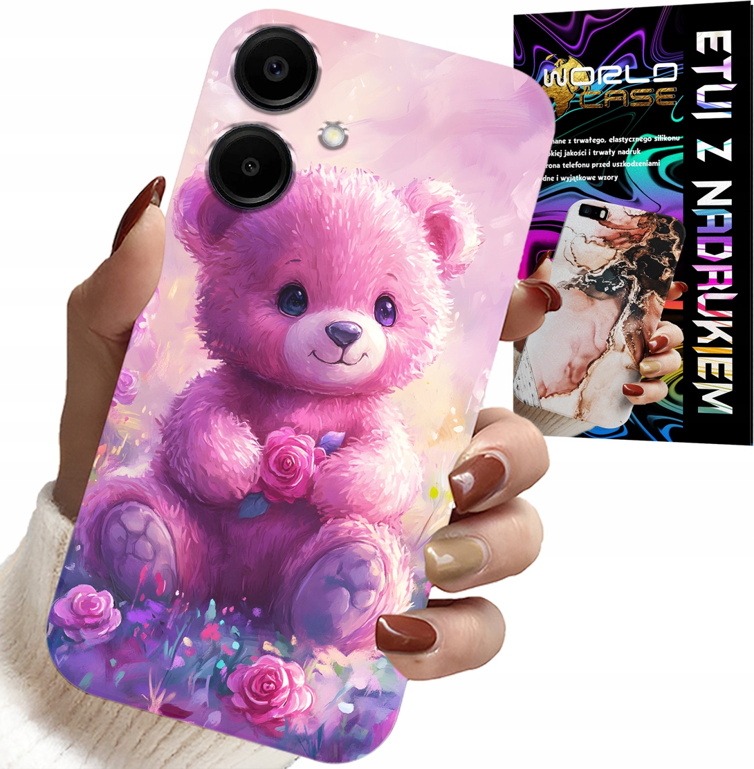 OVITEK ZA SAMSUNG GALAXY A06 5G – LJUBEK MEDVEDEK NA ROZA OZADJU, OVITEK + STEKLO Celoten opis