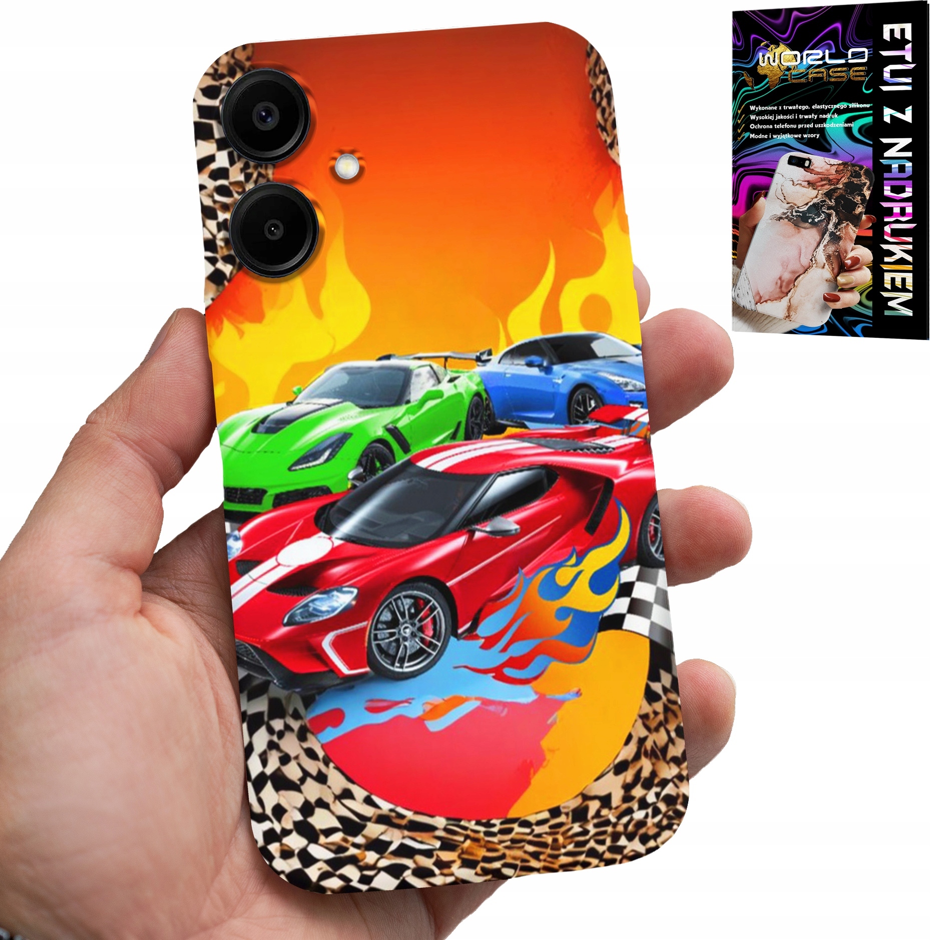 OVITEK ZA SAMSUNG GALAXY A06 5G – ZA OTROKE, DIRKAŠKI AVTOMOBILI + STEKLO Celoten opis