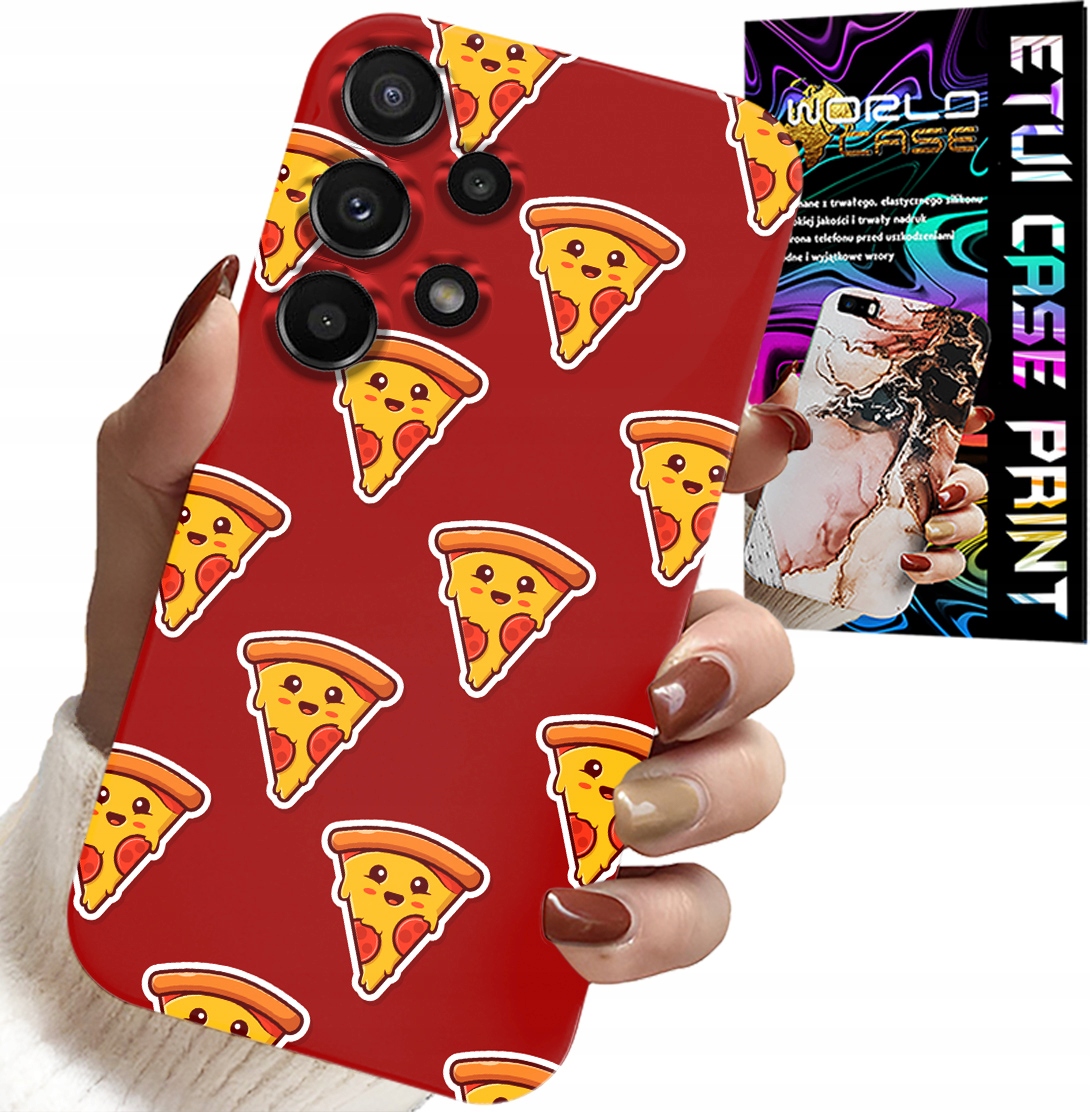 OVITEK ZA SAMSUNG GALAXY A13 4G – VZOREC SREČNE PICE NA RDEČEM OZADJU Celoten opis