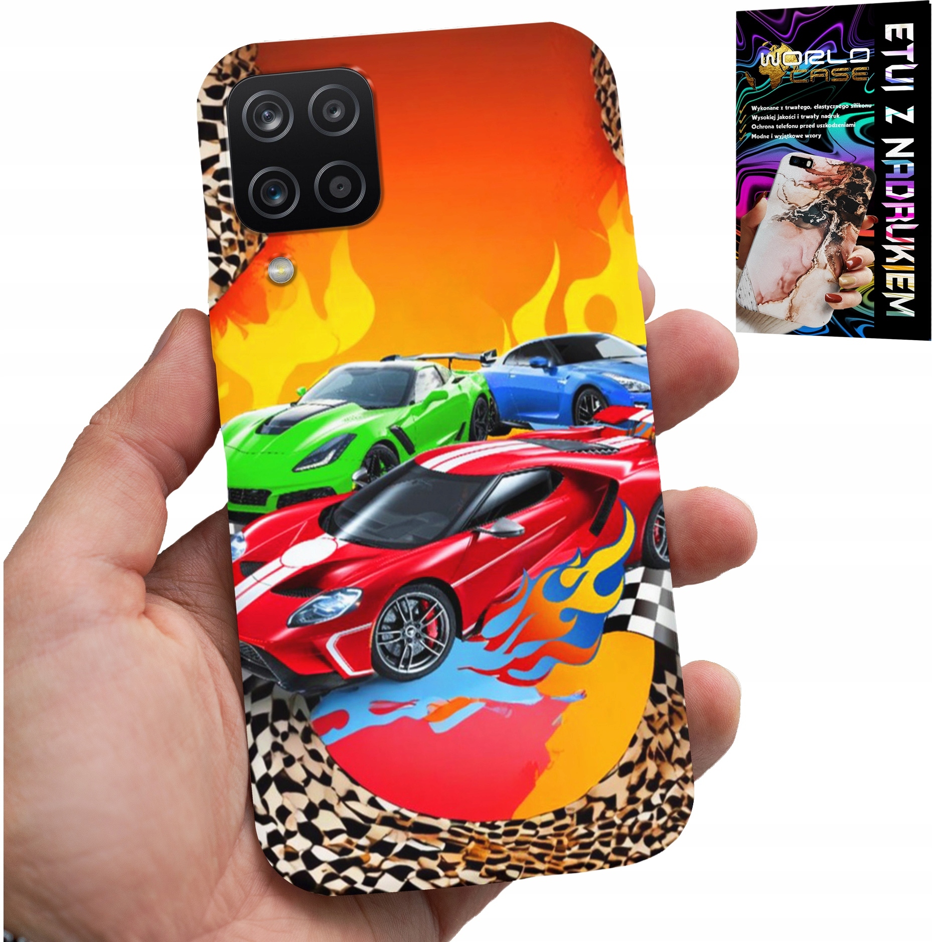 OVITEK ZA SAMSUNG GALAXY A22 5G – ZA OTROKE, DIRKAŠKI AVTOMOBILI + STEKLO Celoten opis