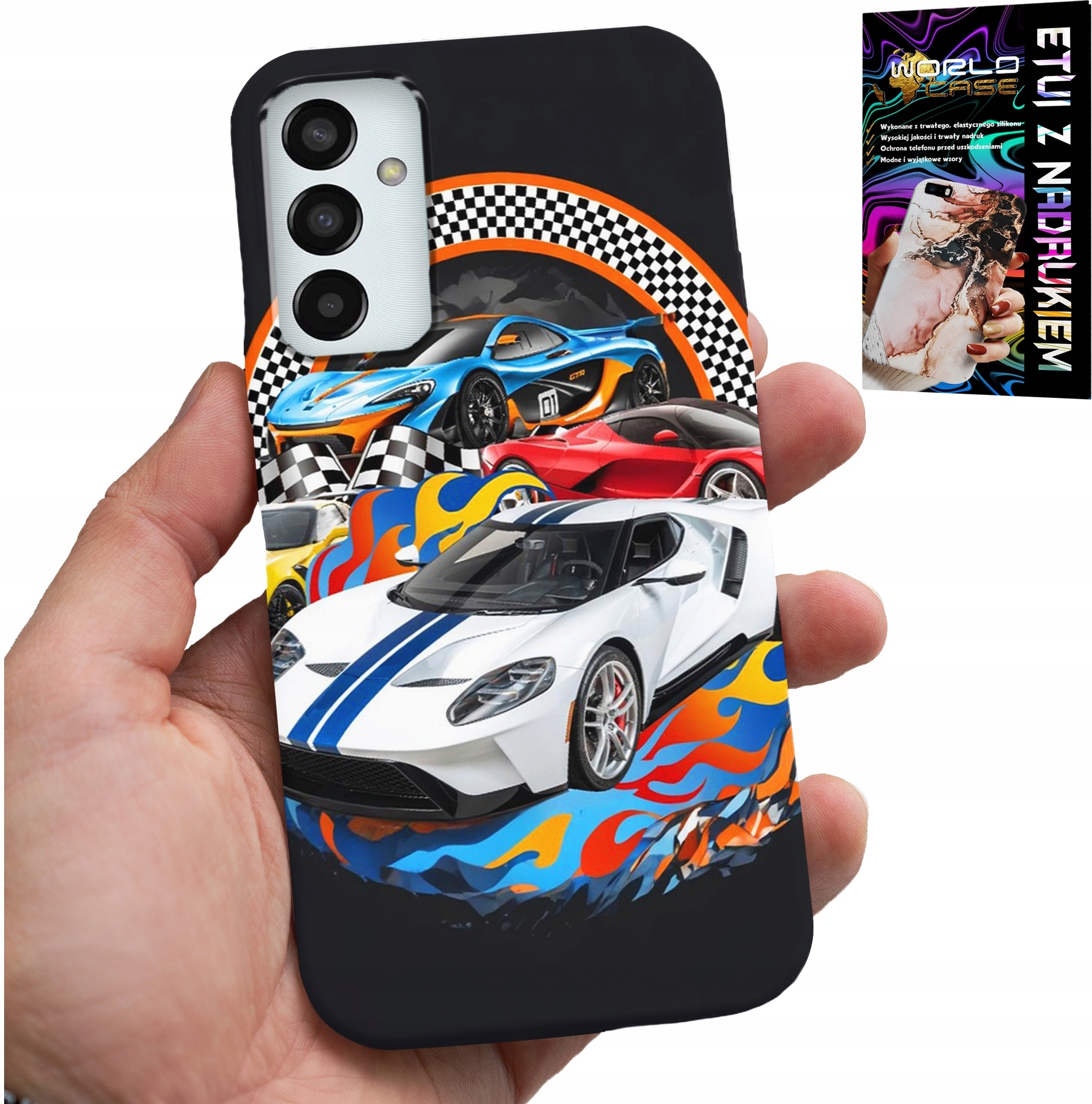 OVITEK ZA SAMSUNG GALAXY M23 – ŠPORTNI AVTOMOBILI, DIRKALNO OVITEK + STEKLO Celoten opis
