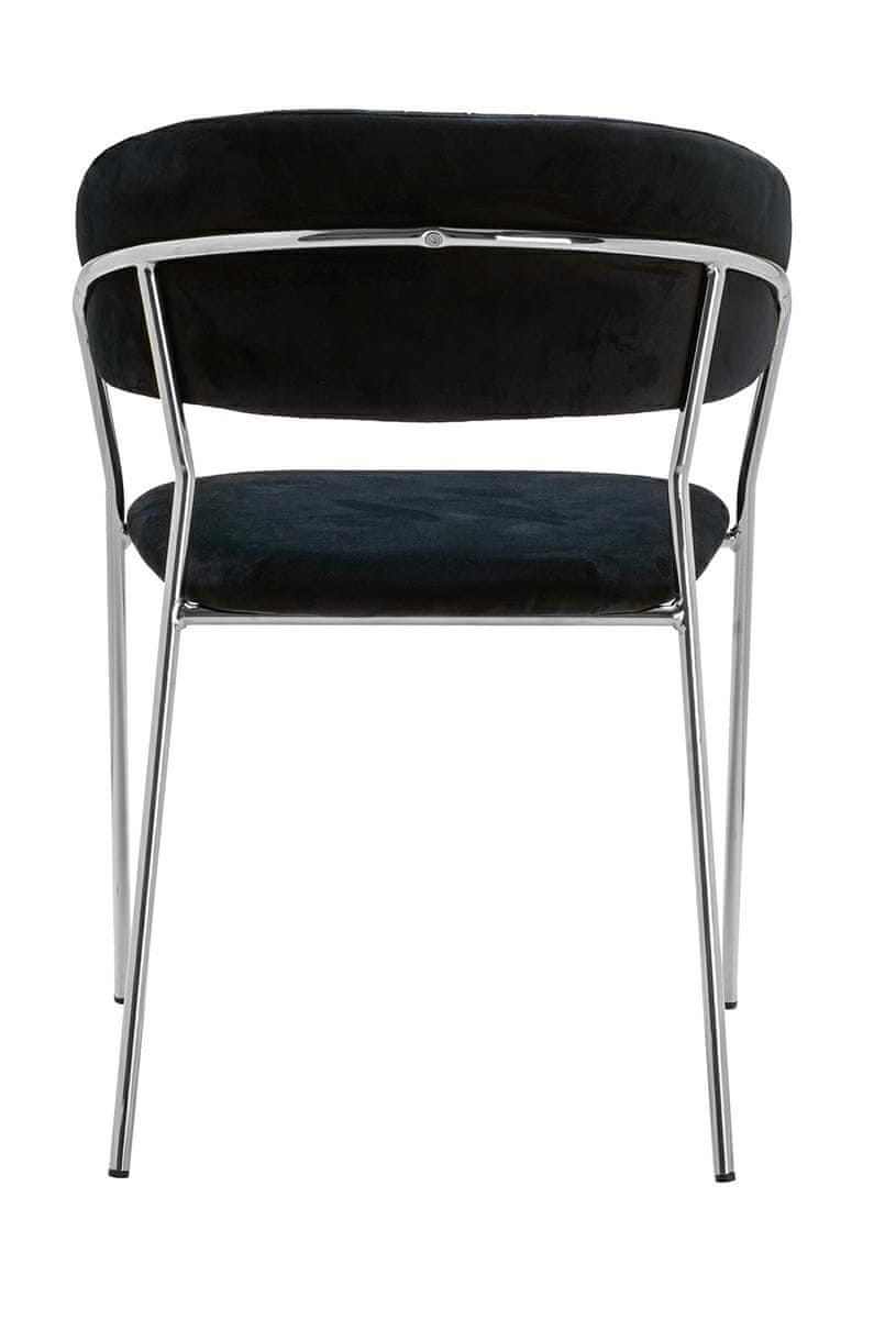Črn stol Margo Silver. Sedež in naslon sedeža, oblazinjeni z mehkim in prijetnim velurjem. Struktura je izdelana iz kromirane kovine. Margo je odlična kombinacija modnih tkanin in brezčasnega sloga. Navpični šivi na naslonu dodajo eleganco. Stol, ki je popolnoma primeren za sodobno in klasično notra Celoten opis