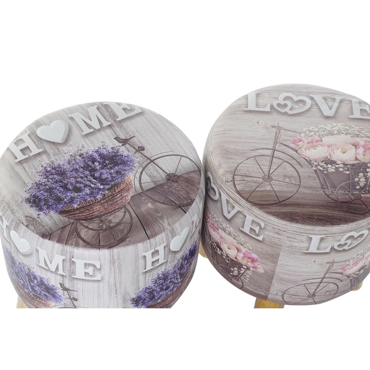 DKD Home Decor Naslon za noge DKD Home Decor Grey Bicycle Pink Lilac PU Pinewood (30 x 30 x 30 cm) (2 enoti) (30 x 30 x 32 cm)