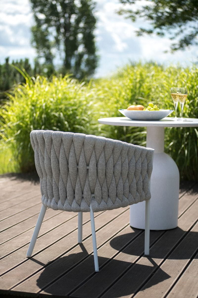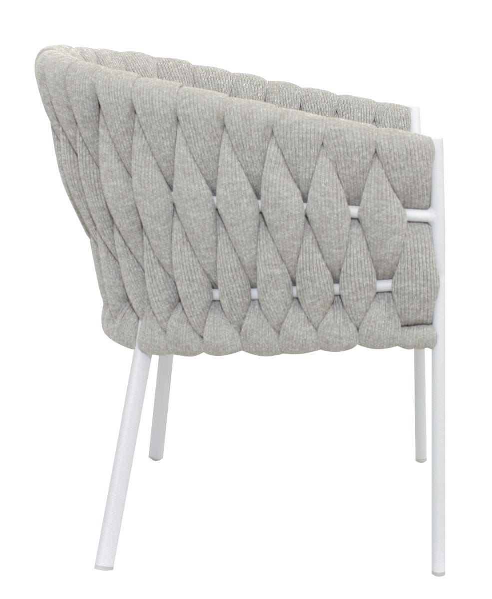 Kampalanbsp; Beli stol 61×62×76 cm Dimenzije: 61×62×76 cm Material: nbsp;ALUMINIUM WHITE SUNBRELLA QDF TAUPE WOVEN, OFF WHITE ROPE