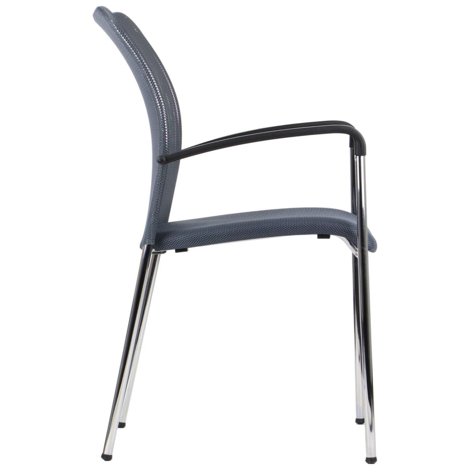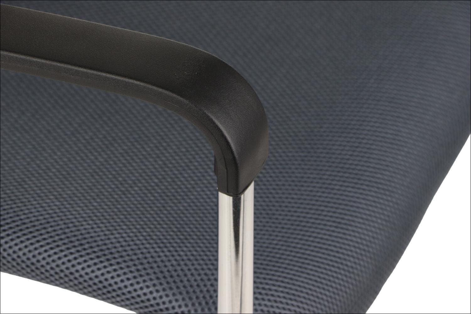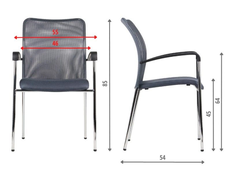 OSNOVNE FUNKCIJE kromiran okvir oblazinjen sedež, mrežasto naslonjalo črni plastični nasloni za roke opremljen s plastičnimi nogicami, ki preprečujejo praskanje tal zlaganje cev s premerom 18 mm Celoten opis