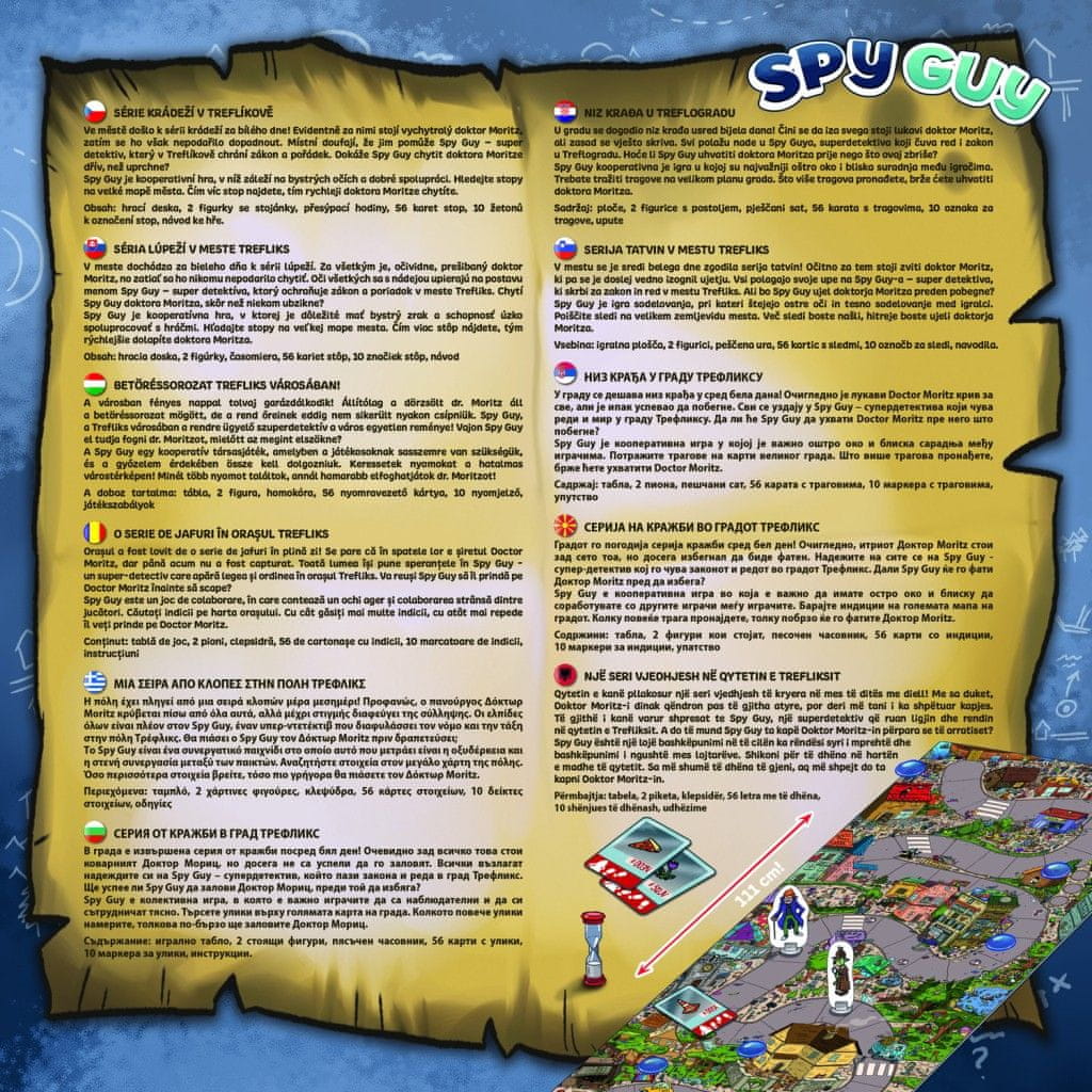 V igri Spy Guy – Spy igrate detektiva in poskušate ugotoviti, kdo stoji za vrsto zločinov proti prebivalcem mesta. Na zemljevidu poiščite čim več dokazov in ujemite krivca, preden pobegne iz mesta. Spy Guy je kooperativna igra, v kateri sta pomembna prodornost in tesno sodelovanje med igralci. Na več kot meter dolgi igralni plošči Treflik poiščite namige, ki vas bodo približali ujetju krivca. Če vam uspe ujeti zvitega doktorja Moritza, ste zmagali!