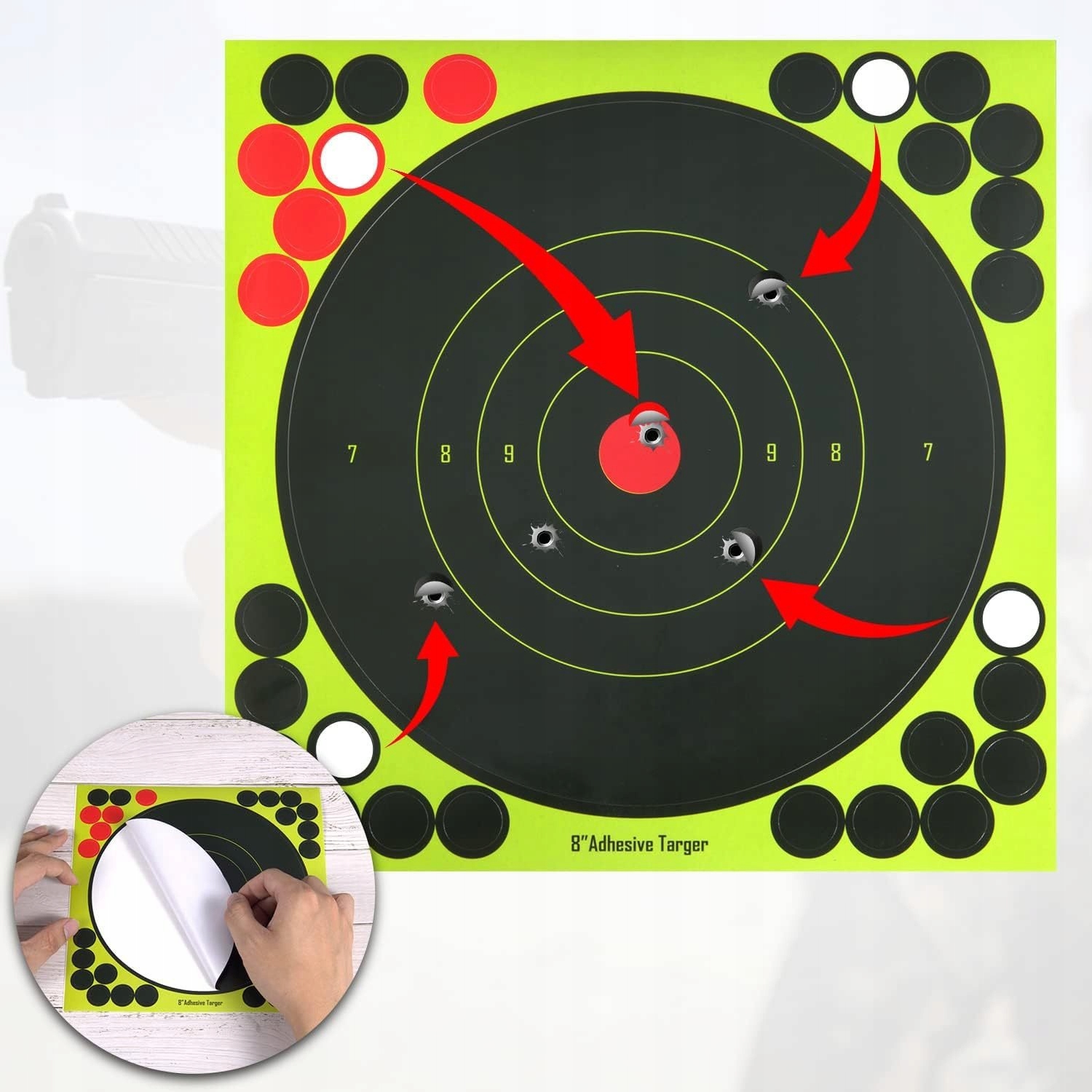 • Vidljivost: Nalepke s posebno tehnologijo brizganja, zaradi česar so vaši zadetki vidni od daleč.