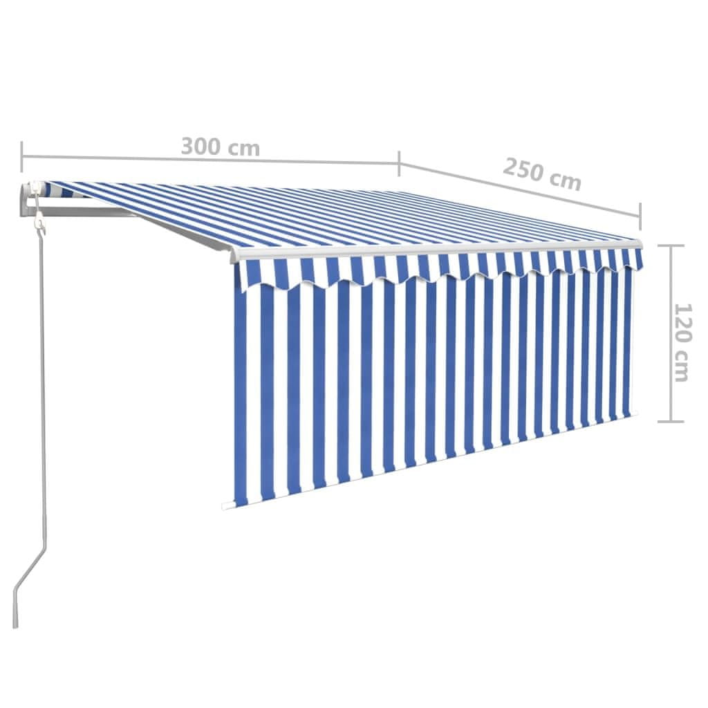 Vidaxl Avtomatska tenda s senčilom LED + senzor 3x2,5 m modra in bela