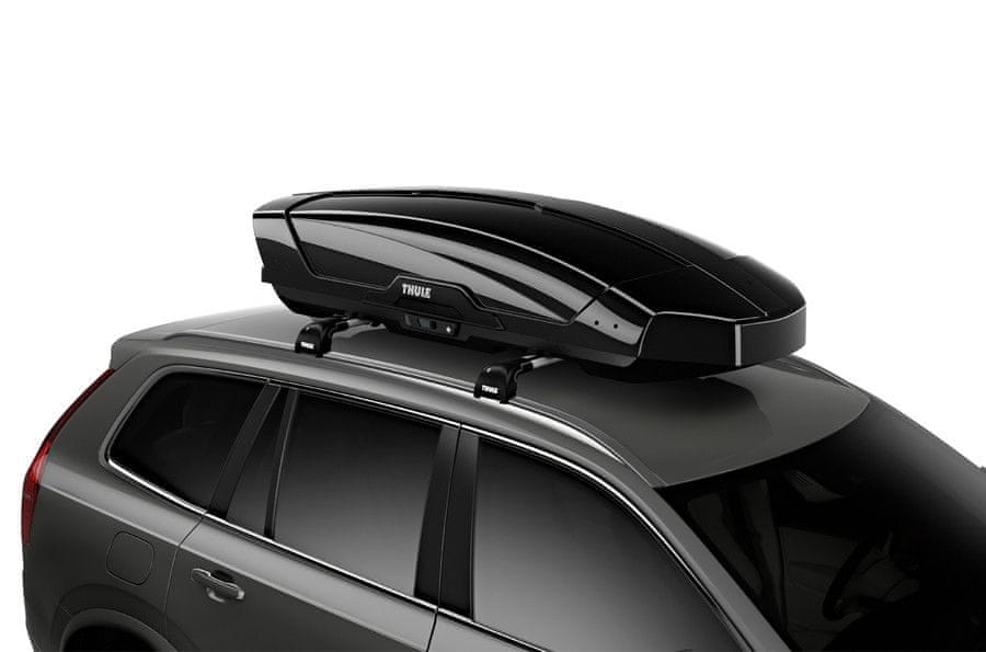 Varen prevoz prtljage s strešnim kovčkom MOTION XT L Glossy v črni barvi. Celoten opis