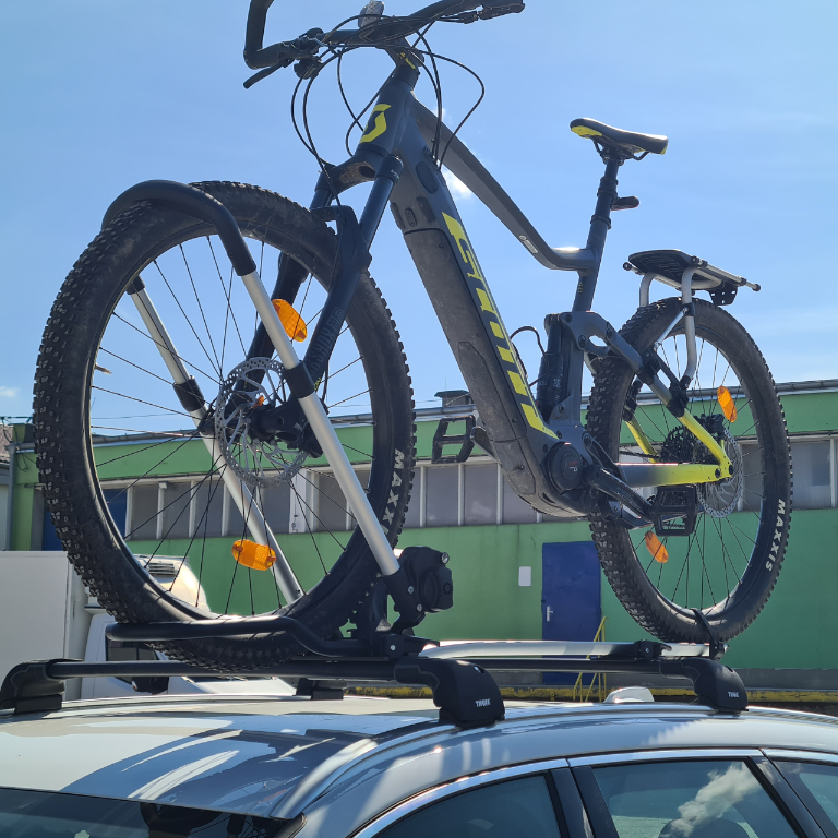 Možna montaža koles FATBIKE in E-BIKE. Nosilec drži kolo za kolesa, ne za okvir.