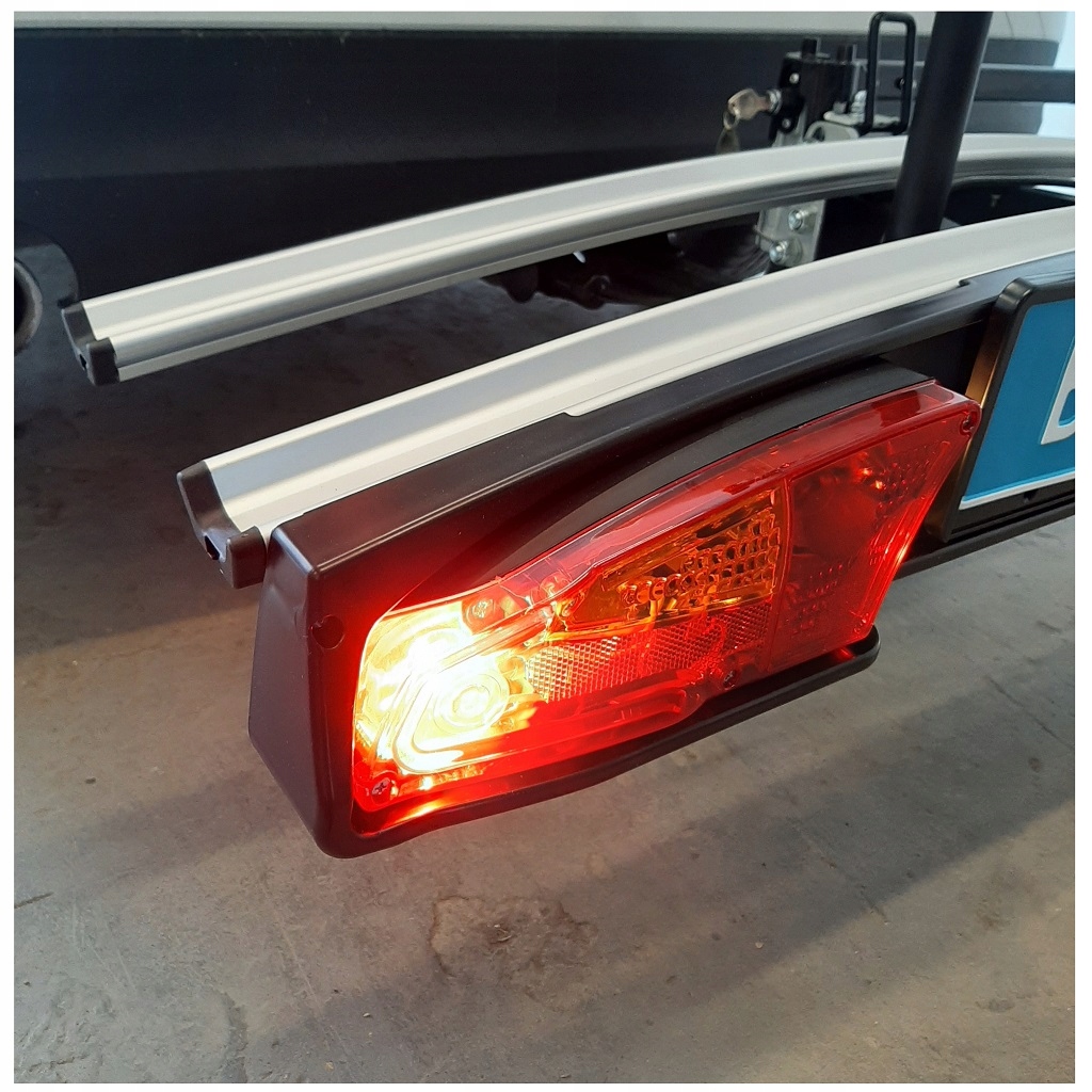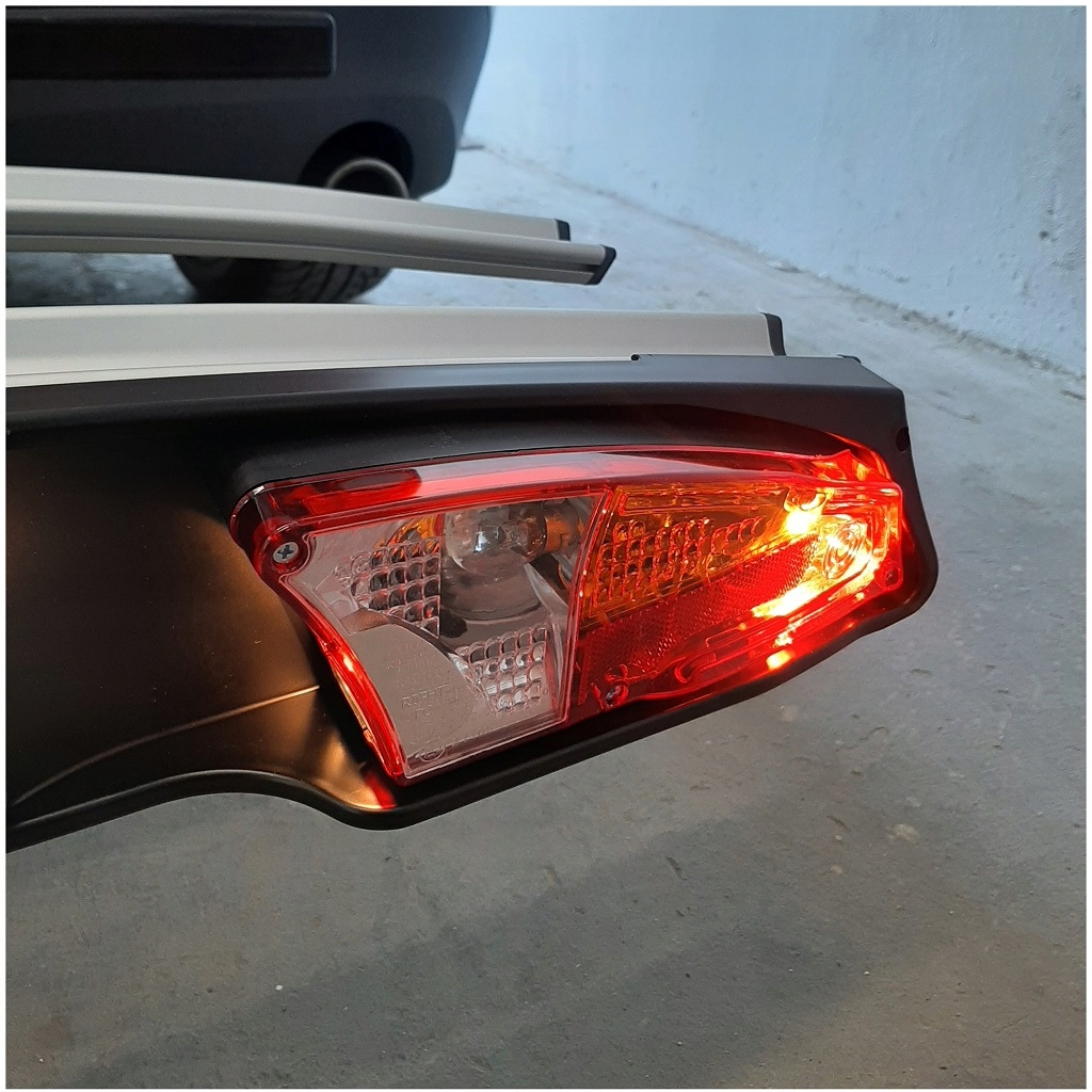 osvetlitev (13-PIN), vključno z vzvratno lučjo v skladu z veljavnimi predpisi. Privlačne luči se dobro zlijejo z novimi modeli avtomobilov. Platformo je mogoče razširiti s podaljškom za tretje kolo.