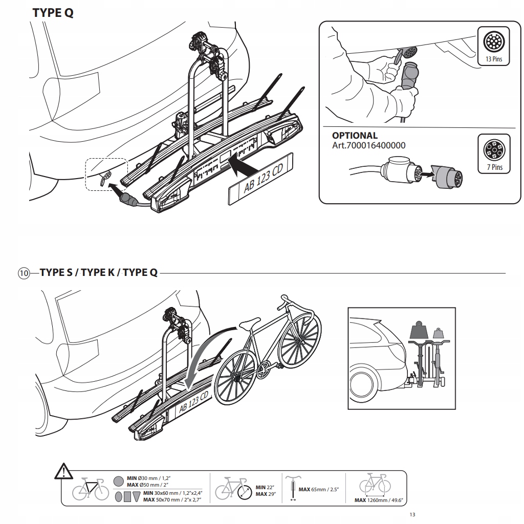 Kolesarska platforma Menabo Merak Rapid (tip Q) za 2 kolesi 13Pin.