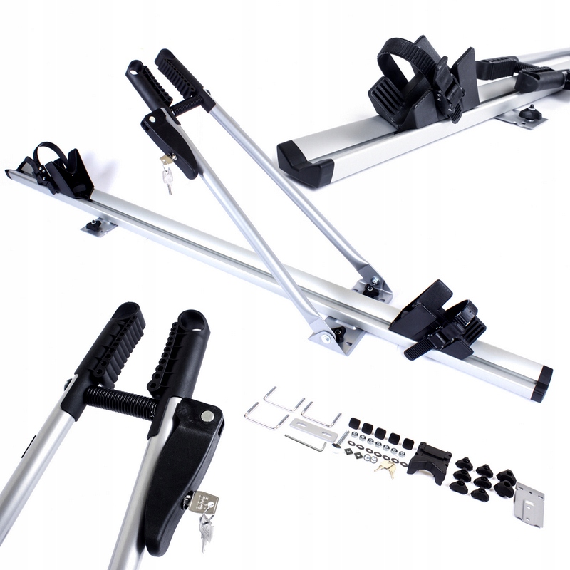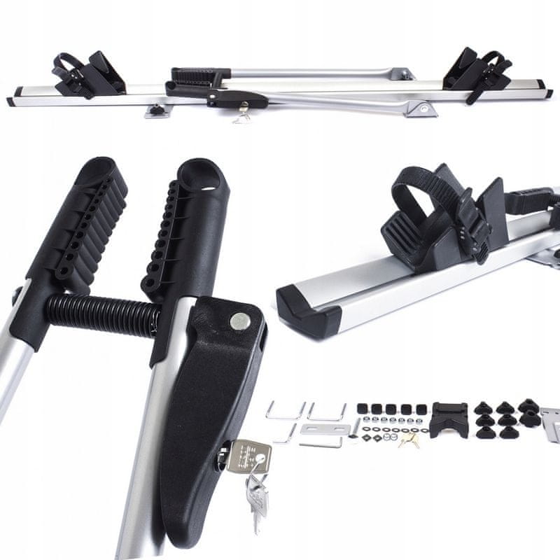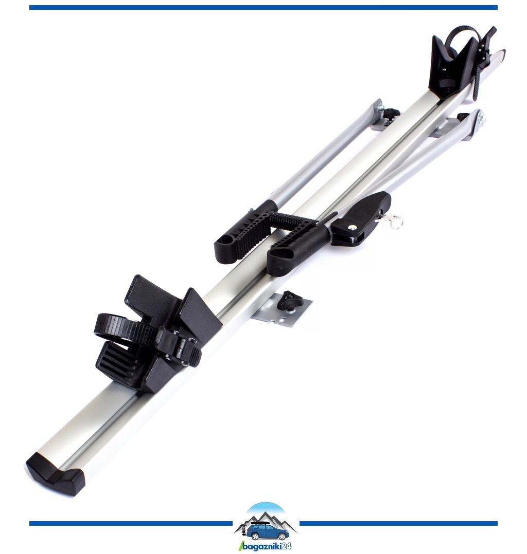 1 x Nosilec za kolo Amos Tour, nameščen na aluminijaste palice s T-utorom (z drsniki) ali jeklene palice (s sponkami).