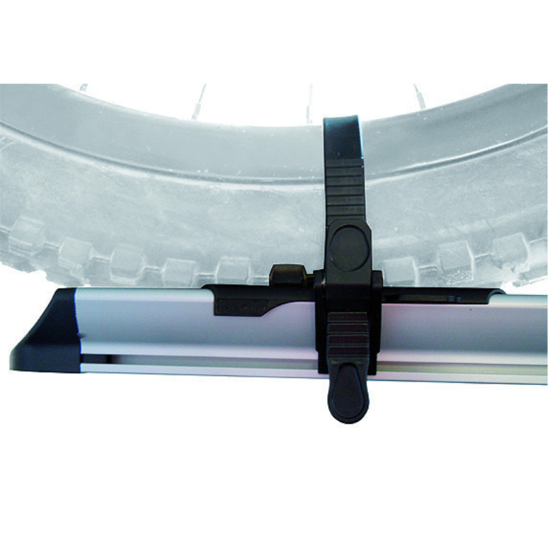 Varen prevoz koles – držala za kolesa z močnimi trakovi zagotavljajo stabilnost in nastavitev za različne velikosti koles.