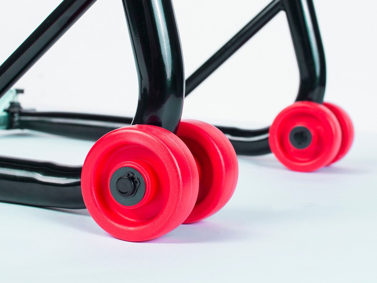 Dvigalo je izdelano iz najkakovostnejših materialov. Izdelano je iz prašno barvanih jeklenih cevi premera 32 mm. Prilagodi se lahko individualni širini motornega kolesa. Vsi deli so zaščiteni pred korozijo s prašnim barvanjem ali cinkanjem. Kolesa so izdelana iz visokokakovostnega kompozita.