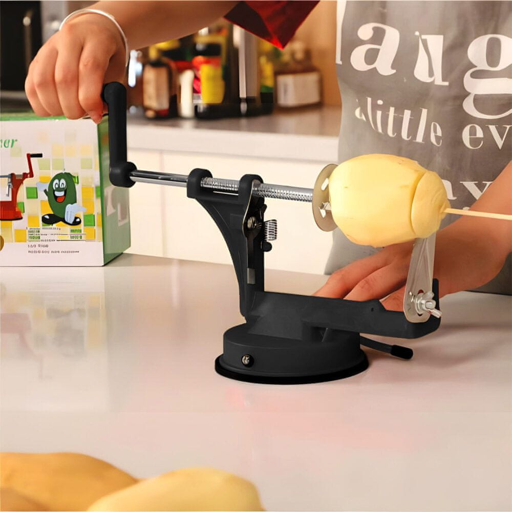 Ta univerzalni kuhinjski pripomoček lahko nadomesti več orodij – primeren je za spiralno rezanje, klasično rezanje in lupljenje. Z enostavnim vrtenjem ročice lahko pripravite vse od pomfrija do zelenjavnih okraskov.