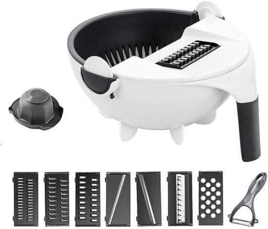 HOME & MARKER® Večnamenski rezalnik, Ročni rezalnik, Sekljalnik hrane, Rezalnik zelenjave in sadja (Rezalnik + 7 rezil + Lupilnik + Cedilo) | SORTEX