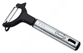 Hitri lupilec v obliki -y, dolžina 16 cm, izdelan iz mat nerjavečega jekla 18/8, ročaj z luknjo za obešanje, premično rezilo omogoča enostavno čiščenje krompirja in zelenjave, zelo tanke rezine. Primeren za pomivalni stroj. Dimenzije – 16 × 5, 9 cm