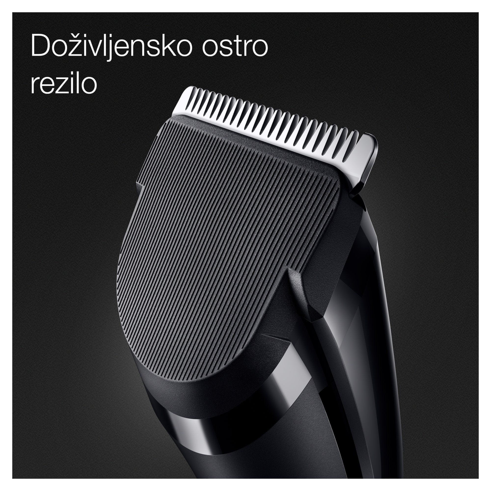 Brez truda ostrizite in oblikujte svoje lase v domačem okolju. Izjemno ostra rezila zagotavljajo, da je domače striženje hitro in preprosto – ne glede na dolžino ali gostoto las.