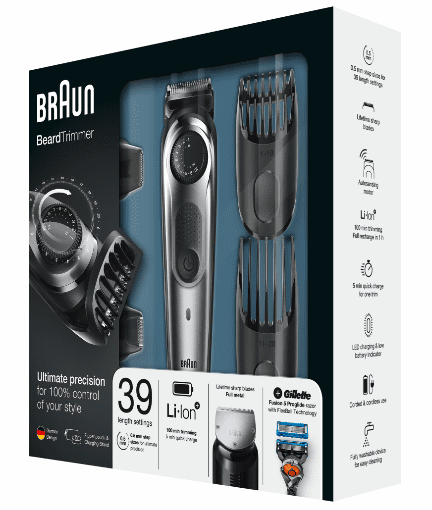Ustvarite različne sloge brade z novim polnilnim urejevalnikom Braun BT7040. Ponuja 39 nastavitev dolžine in rezila, ki ostanejo ostra celotno življenjsko dobo aparata ter zagotavljajo skrajno natančnost za enakomerno striženje.