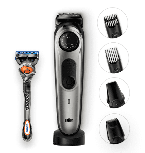 Z ostrimi rezili, ki trajajo celotno življenjsko dobo aparata, mini brivnikom z mrežico in natančnim prirezovalnikom urejevalnik brade Braun zagotavlja skrajno natančnost. Z brezplačnim brivnikom Gillette Fusion5 ProGlide za gladko britje.