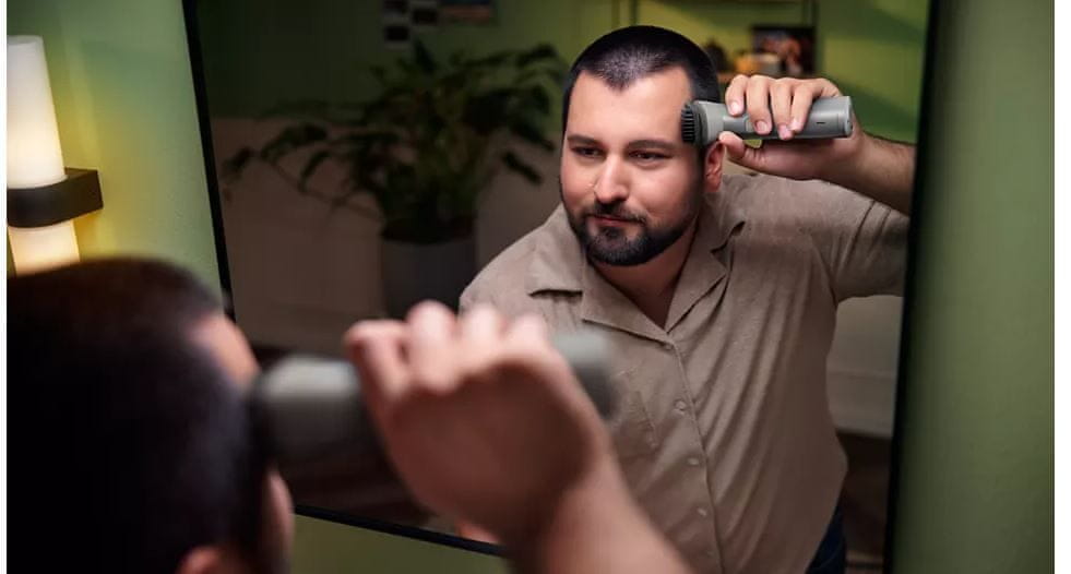 - Prirezovalnik z nastavki poskrbi za urejanje dlak na obrazu in telesu ter za striženje las.