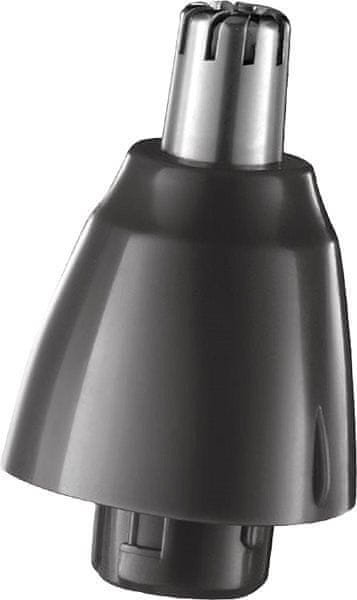 • Za ostre linije širok prirezovalnik – podroben prirezovalnik za krajše obrezovanje (0,2 mm) – mini brivska glava – linearni prirezovalnik telesa – prirezovalnik dlak v nosu, ušesih in obrveh * 8 glavnikov za različne dolžine striženja (1,5–16 mm) * polnjenje prek USB (priložen kabel) * omrežje/akumulator – do 40 minut delovanja brez kabla * indikator polnjenja * nedrseč ročaj * pralne glave za enostavno čiščenje * stojalo za polnjenje