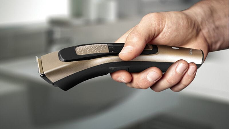 Trimer za lase z zelo tihim motorjem, rezili, prevlečenimi s titanom, nastavljivo višino rezanja od 1 do 20 mm in časom uporabe do 90 minut.